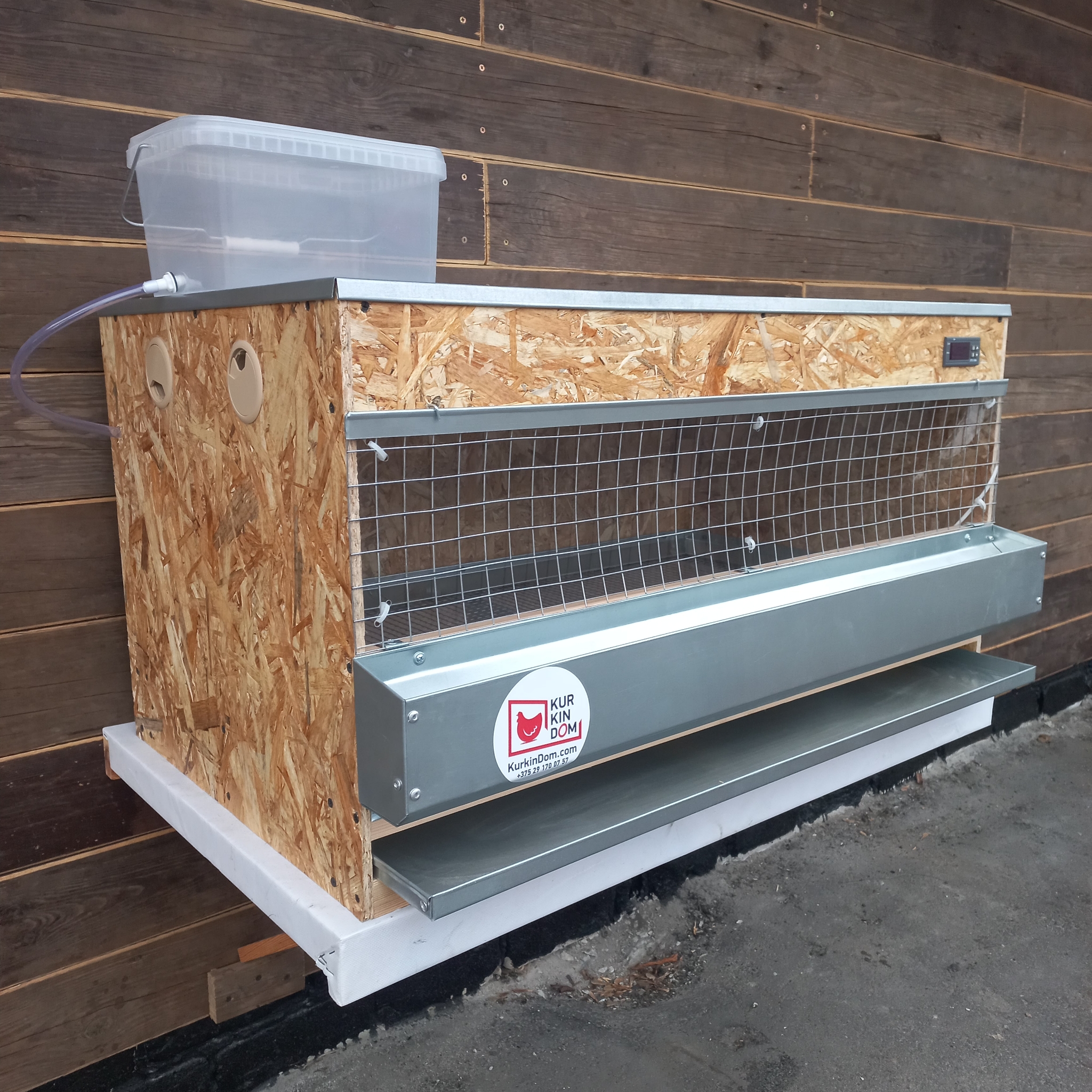 – Дверка выполнена из оцинкованной сетки 25×25 мм и имеет съёмную шторку из плотного пластика, которая помогает создать благоприятную среду для цыплят.