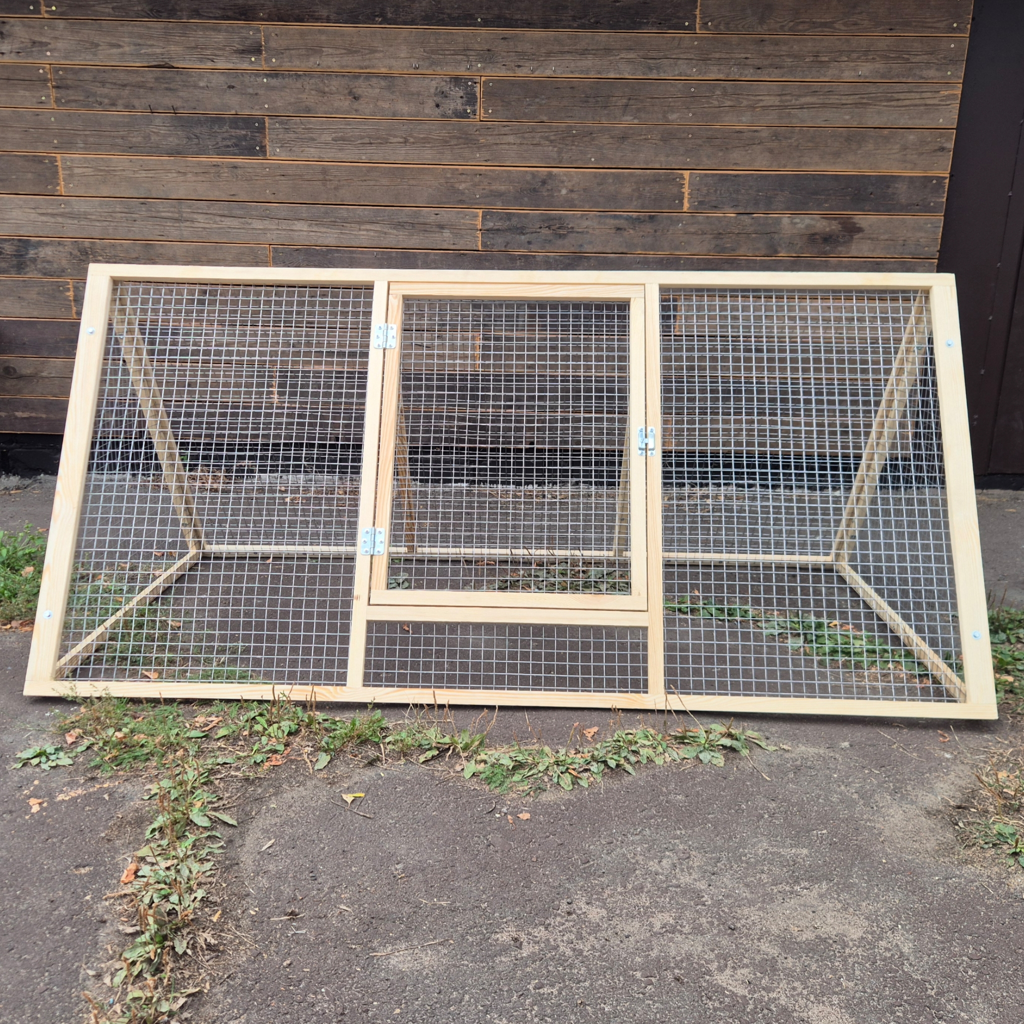 - Благодаря простой, но надежной конструкции, вы всего за несколько минут развернете полноценный выгул размером 2 м в длину и 90 см в высоту. А когда необходимость в нем отпадет, вы так же легко сложите его в компактную панель, которая не займет полезное пространство в вашем сарае или гараже.