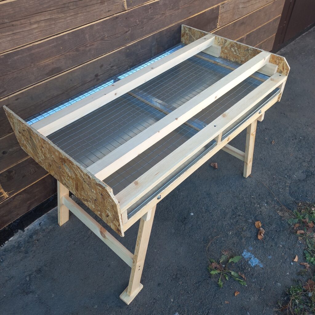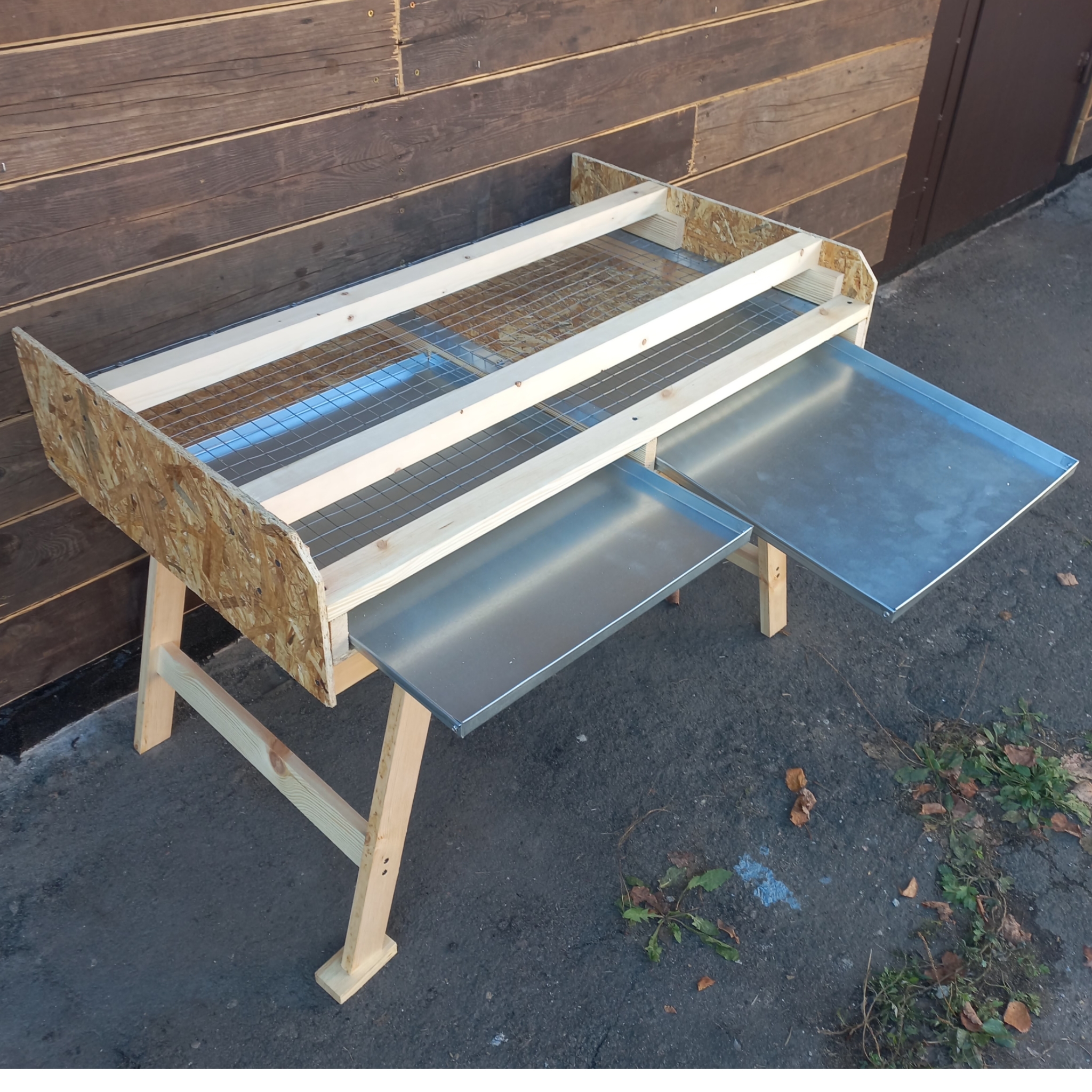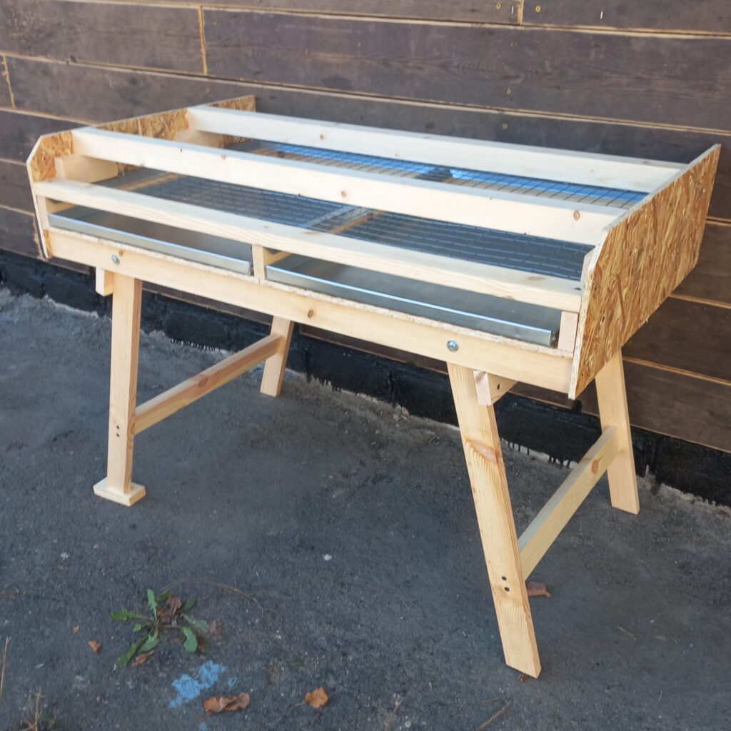 - В нижней части установлена оцинкованная сетка 25×25 мм и поддоны для помёта.