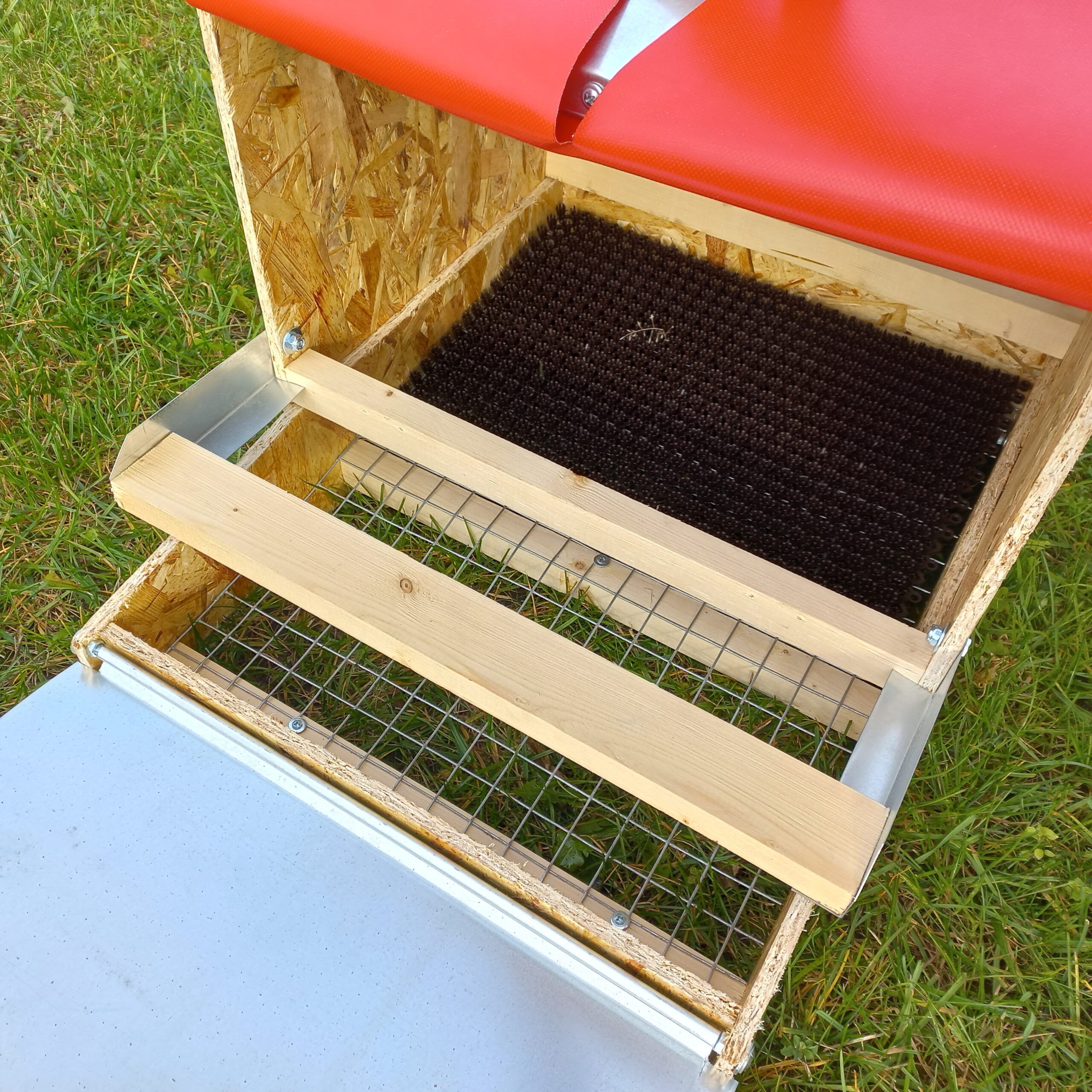 • Позволяет мусору (помёт, сено, грязь, перья и т. д.) удалятся из гнезда, провалившись через квадратные отверстия проволочной сетке.